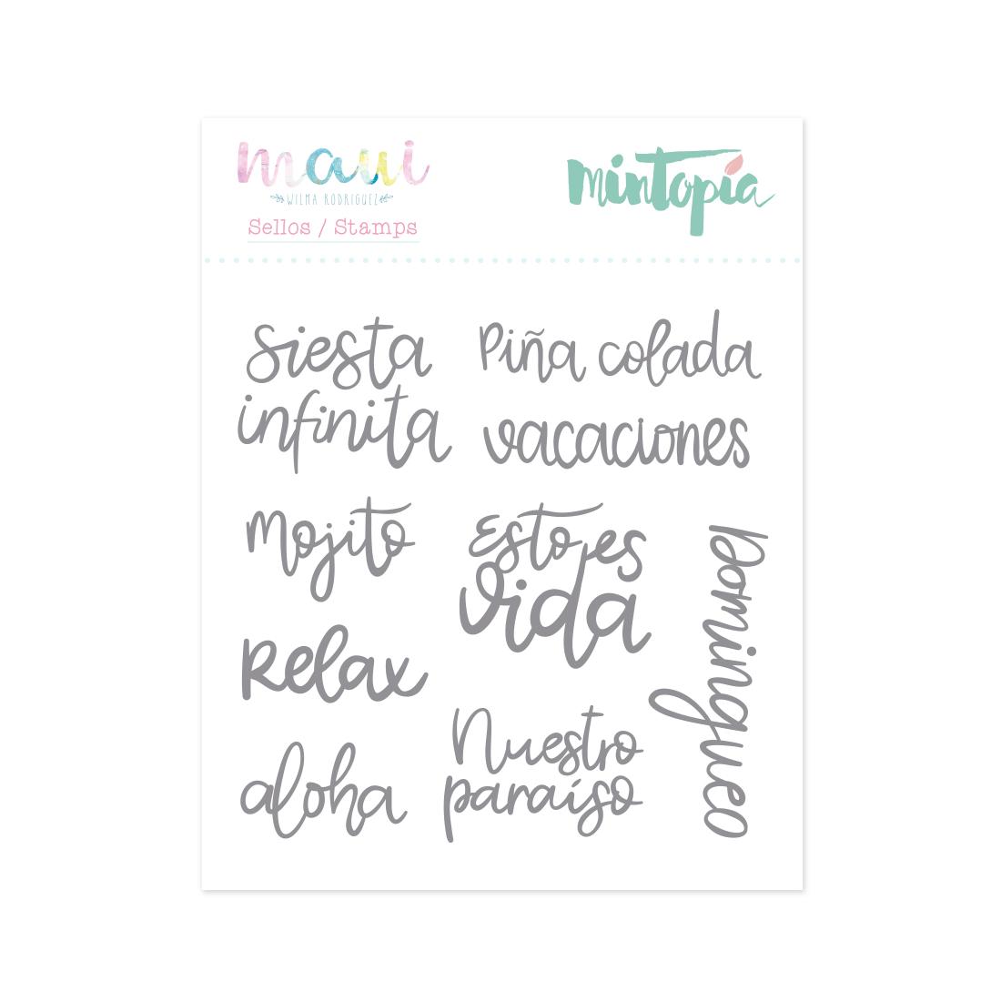 Sello Palabras veraniegas 10,5 cm x 10,5 cm