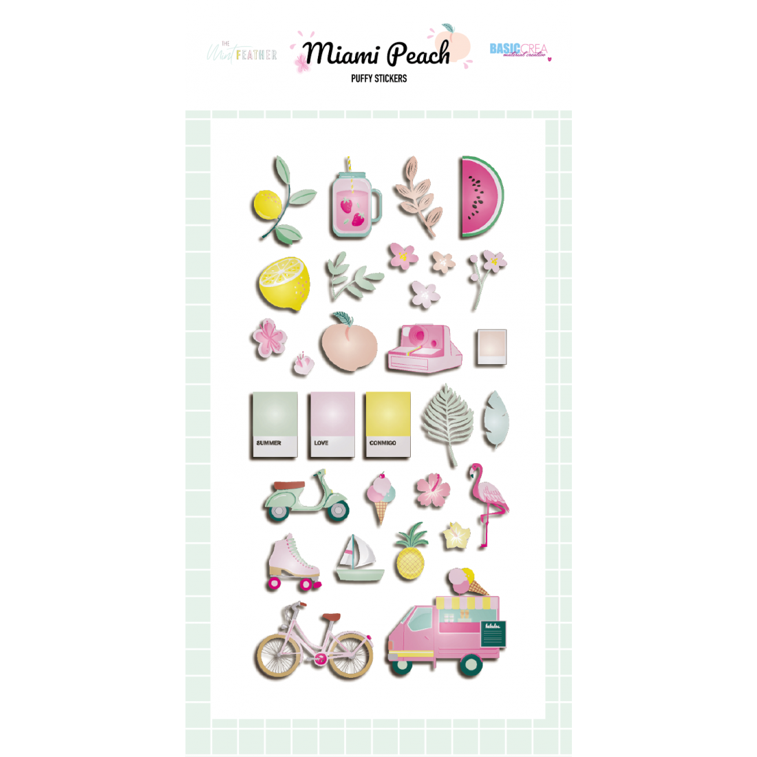 Puffy stickers MIAMI PEACH 30 color puffy stickers