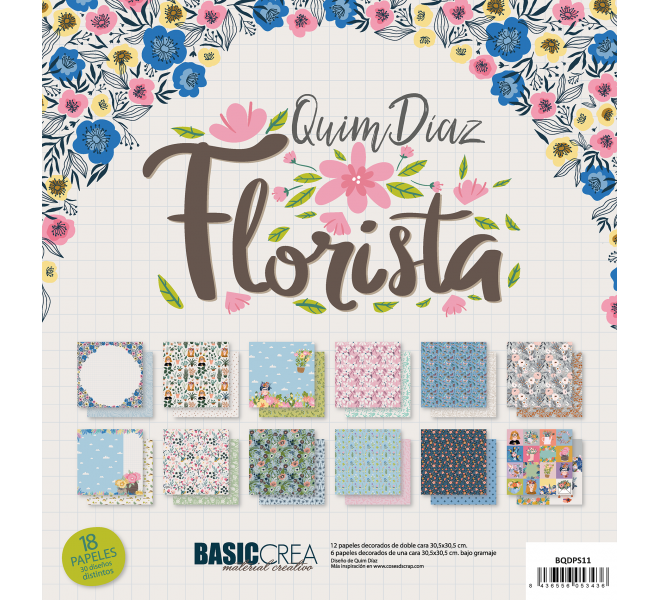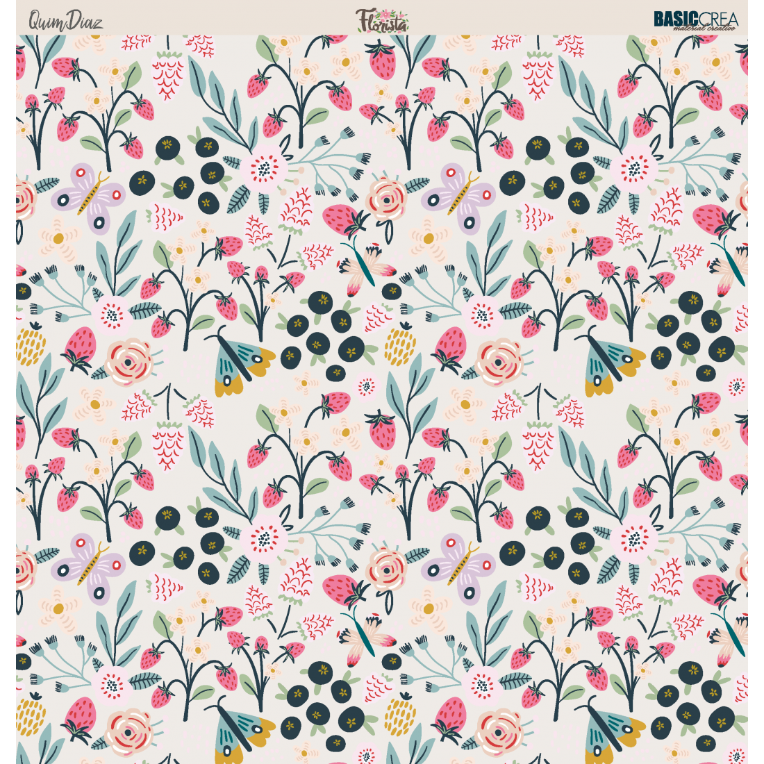FLORIST Paper pad 30,5x30,5 with 12 sheets printed on two sides plus 6 sheets printed on one side. Two different weights.