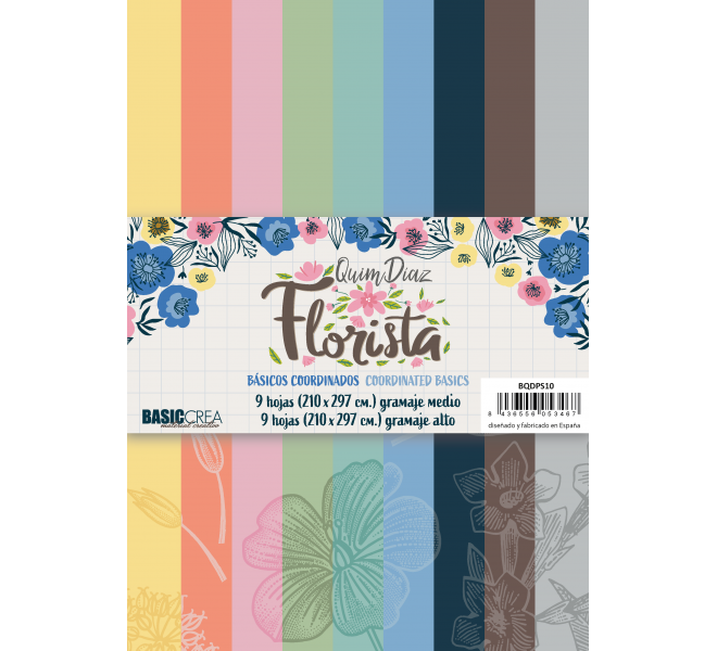 FLORIST Basic coordinated Paper pad 210x297mm with 9 sheets printed on two sides
