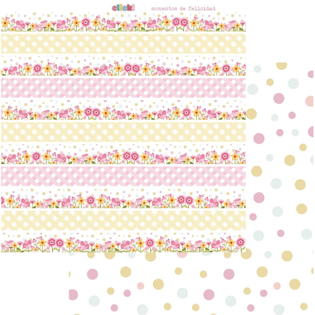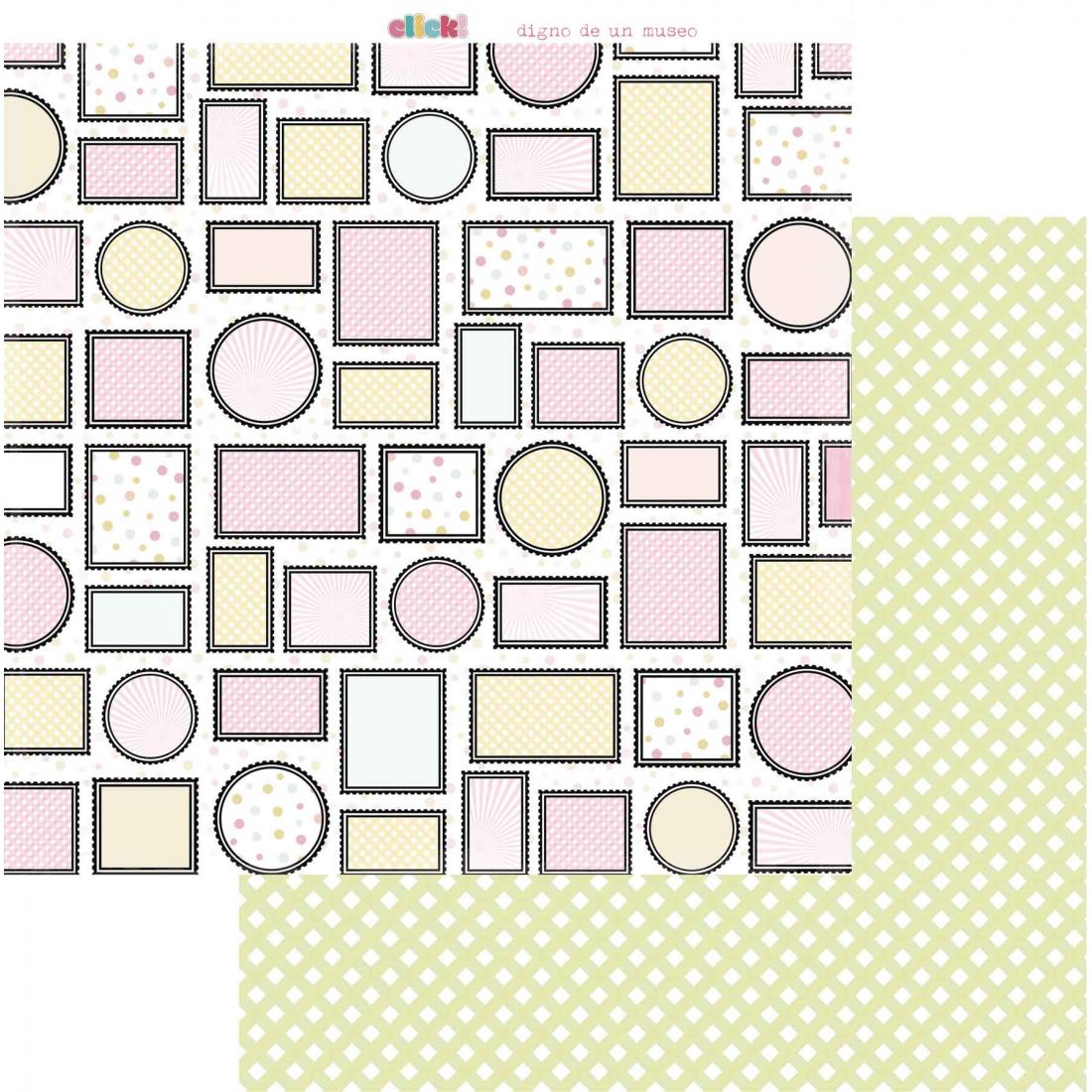 18 Double-sided decorated papers 30,5x30,5 cm 36 different designs. Includes a sheet of each design "CLICK" Collection