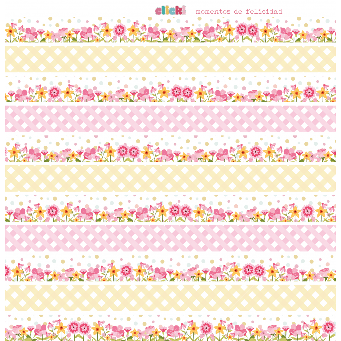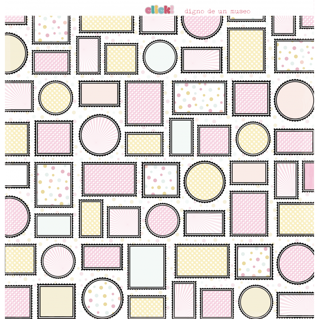 Vegetable paper printed in color. 3 sheets 12"x12"(30,5x30,5 cm. 1 design per sheet "CLICK" Collection