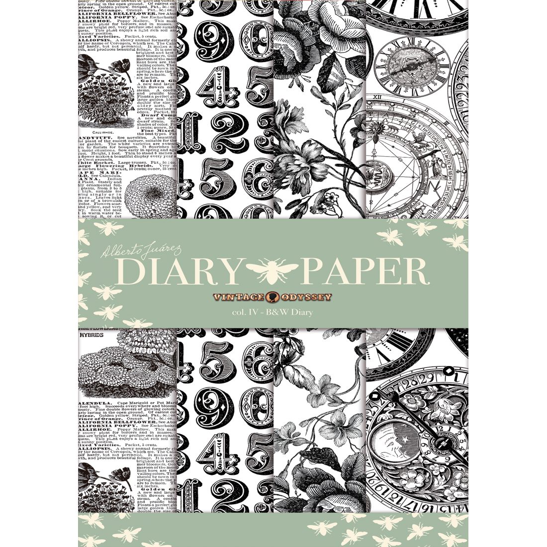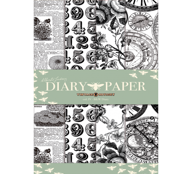 Découpage paper. Col. IV- B&W Diary - 4 sheets 21x29,7 printed in black