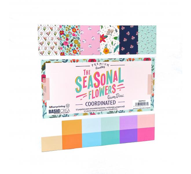 Paper pad 30.5x30.5 mm with 12 sheets for bindings, cardboard and kraft paper. 6 sheets of paper 150 grams printed on two sides + 6 sheets of paper 90grs printed on one side. SEASONAL