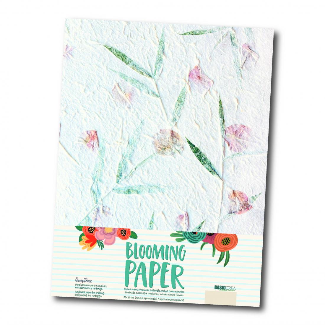Sustainably produced handmade paper, includes natural flowers 28 x39 cm. For handicrafts, bookbinding and cartonnage - PERNAMBUCO