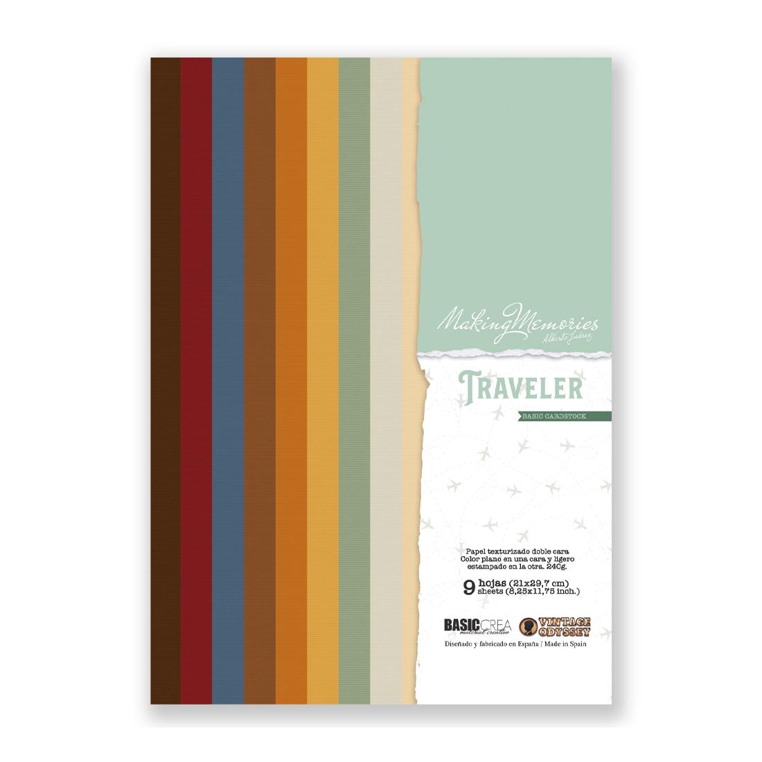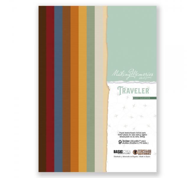 Pad of 9 double-sided printed textured papers 21x29.7 cm - TRAVELER