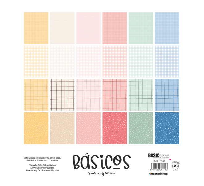 Basics-12 Papers 30.5x30.5 cm double-sided prints 4 different designs-6 colors