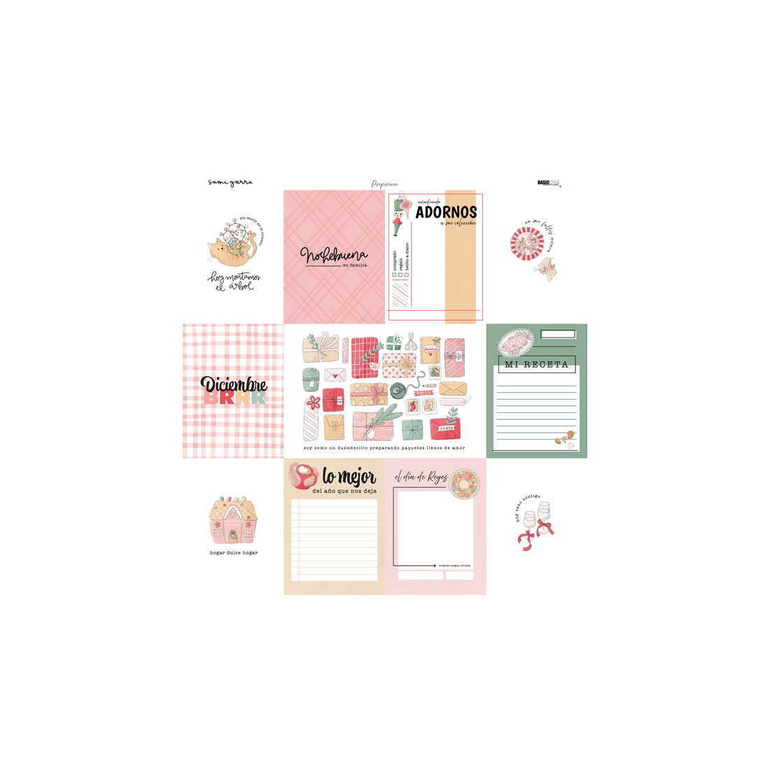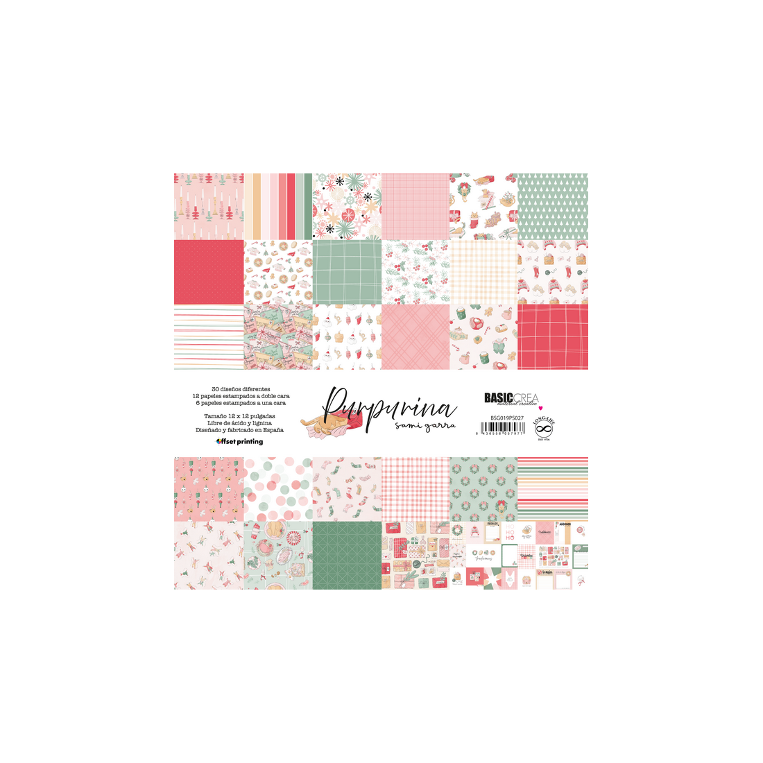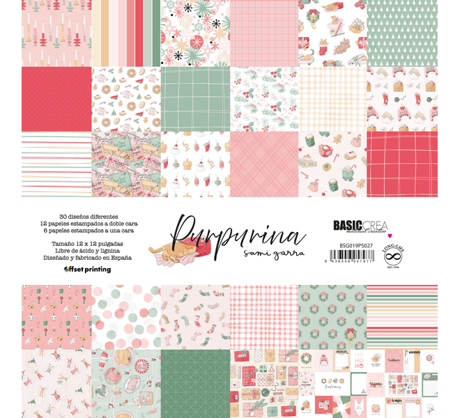 Glitter - Block 30.5x30.5 cm -12 Double-sided printed papers +6 single-sided printed papers.30 different designs