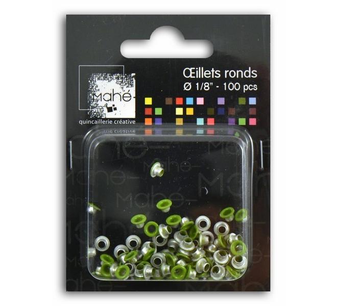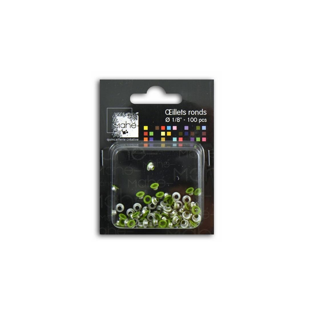 Rivets 1/8 - 100pcs - green. Assortment of 100 round metal eyelets (diameter : 1/8 ).