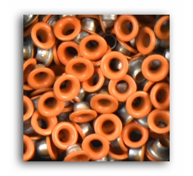 Rivets 1/8 - 100pcs - orange. Assortment of 100 round metal eyelets (diameter : 1/8 ).