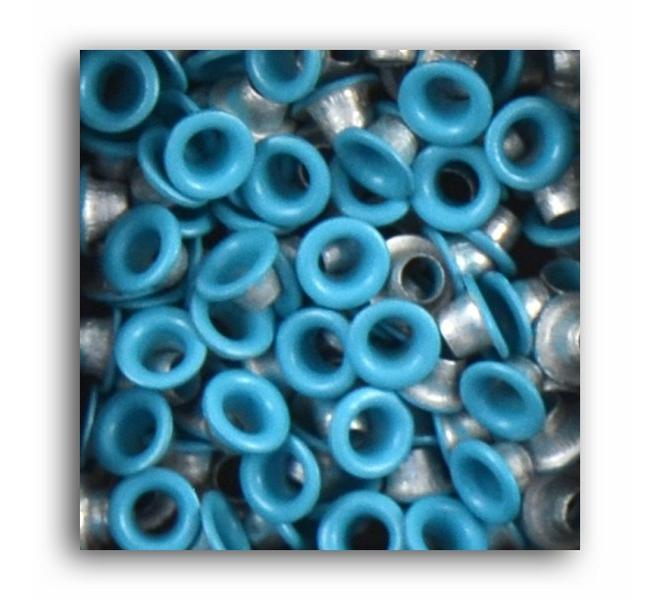 Rivets 1/8 - 100pcs - turquoise. Assortment of 100 round metal eyelets (diameter : 1/8 ).