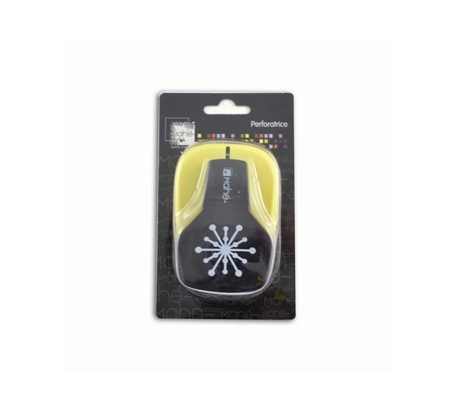 Drill: snowflake. Dimensions of the cut shape : 3.1 x 3.1 cm. Recommended weight : 80 to 235 g/m2. Use the drill with the cutting die facing us to position it correctly and save paper. When the drill loses bite, perform several perforations with glass paper to sharpen the edges of the die.