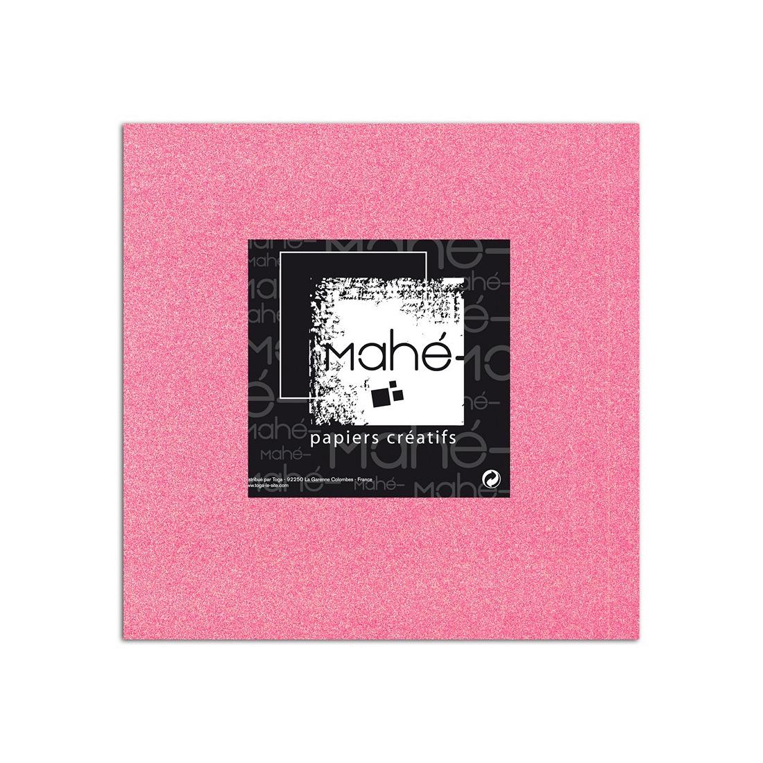 Mahé 30x30 - Glitter Adhesive Paper Pink Fluo 5 sheets. creative, adhesive and completely shiny cardboard paper. Useful format : 30.5 x 30.5 cm. 200 g/m2, No acid.