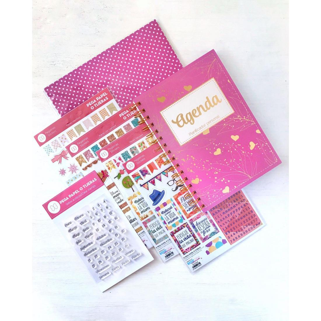 Kit Agenda "PEGA,PAPEL O TIJERAS" Rosa