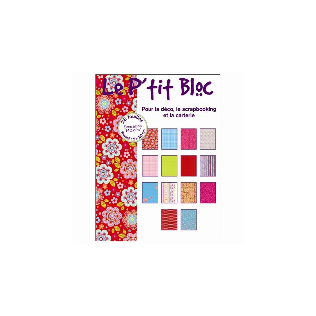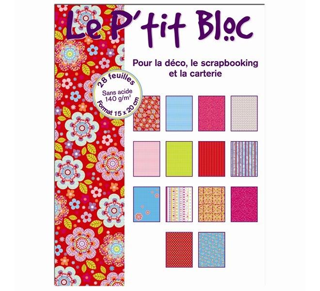 P'tit Bloc Boheme 15x20 28f.. Bloc con un surtido de 28 hojas de papel combinadas y impresas a una cara (14 modelos x 2). Formato útil : 15 x 20 cm. Sin Acido, 140 g/m².
