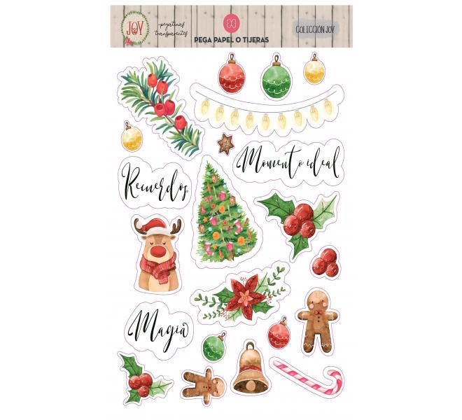 Stickers Transparentes "Joy" 2 hojas A5 Pega Papel o Tijeras - Precio Pack