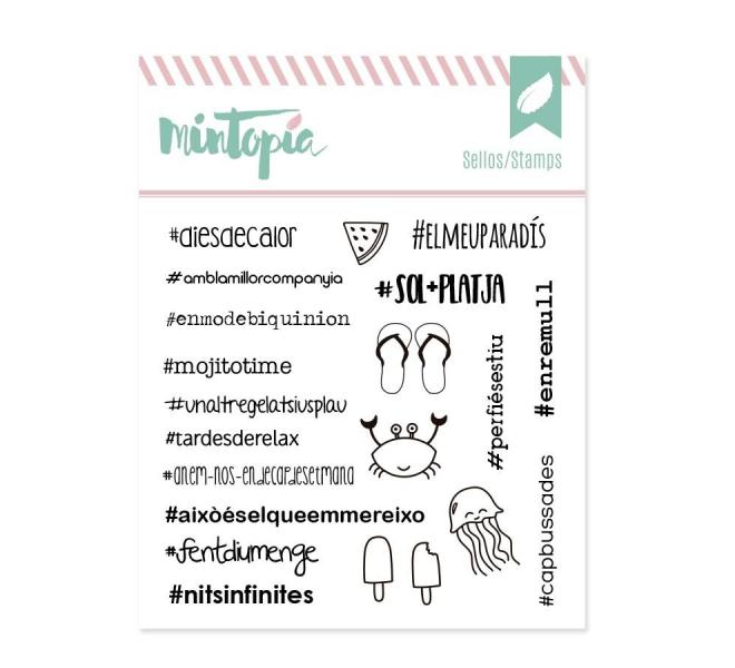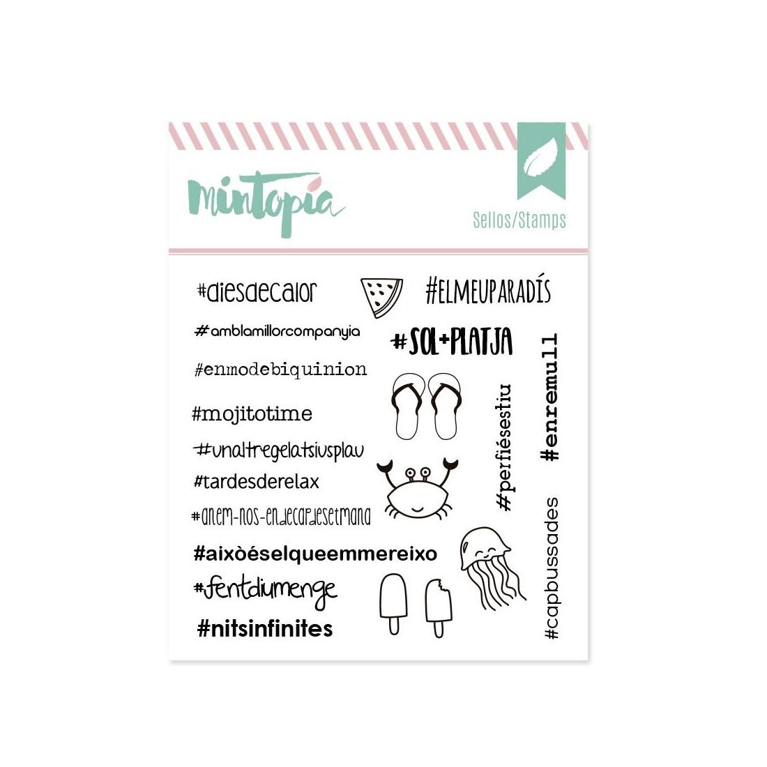 Sello Hashtags veraniegos catalán 10,5 cm x 10,5 cm