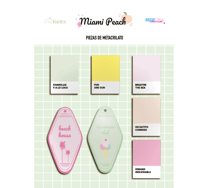 Metacrilatos MIAMI PEACH 7 piezas de metacrilato impreso a color