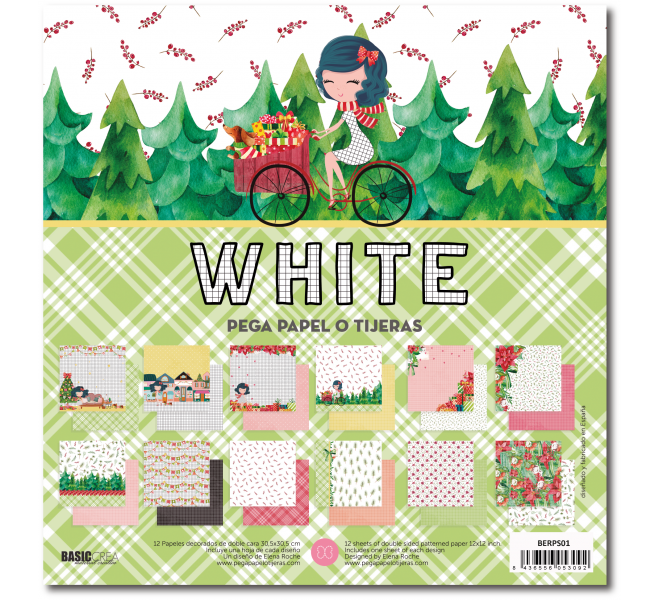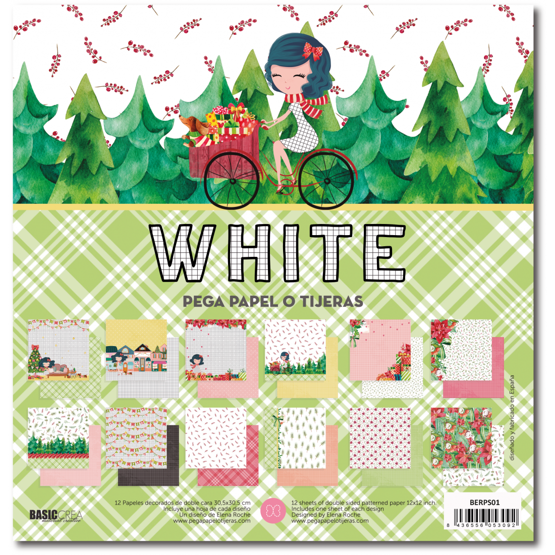 WHITE Bloc de 12 hojas 30,5X30,5 impresión a doble cara color