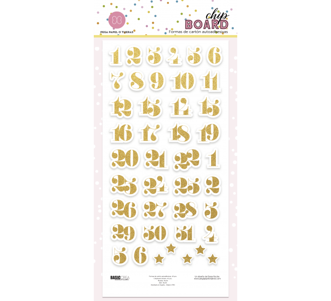 Números de Chipboard adhesivos con foil dorado(tipus Thickers)