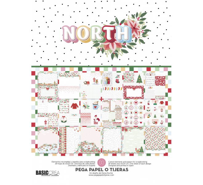 8 papeles estampados a una cara + 16 papeles de tarjetas 15,2x20 cm