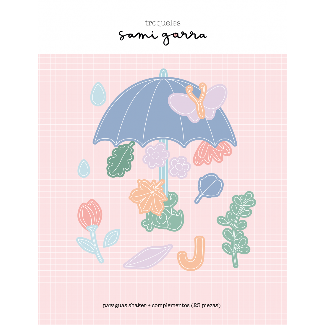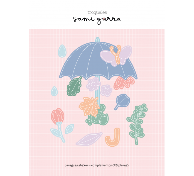 Dir Paraguas shaker + mango , flores, hojas, gotas y mariposa (23 pcs) MARY