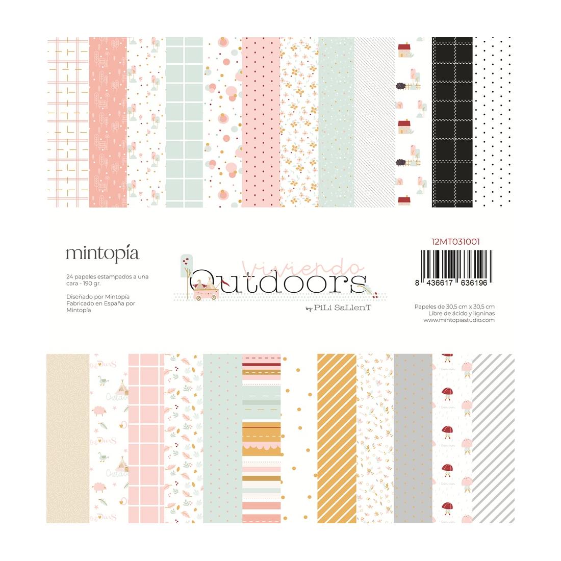 Stack 24 papeles a una cara 12"x12" Outdoors by Pili Sallent