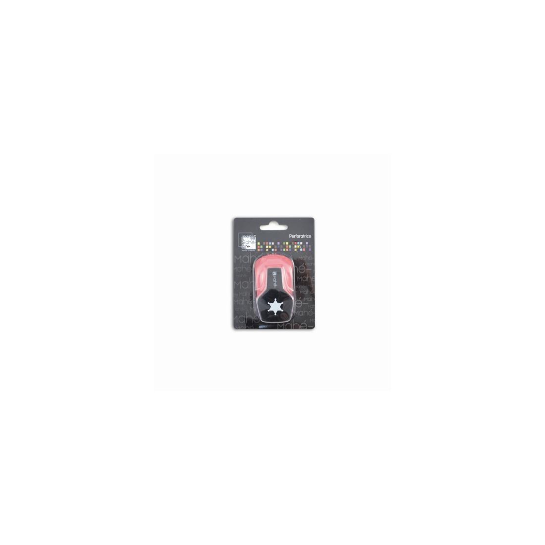Perforadora: estrella de cherif. Dimensiones de la forma cortada : 1,4 x 1,6 cm. Gramaje aconsejado : de 80 hasta 235 g/m².Utilizar la perforadora con el troquel de corte hacia nosotros para situar la correctamente y ahorrar papel.Cuando la perforadora pierde mordiente,realizad varias perforaciones con papel de cristal para afilar los bordes del troquel.