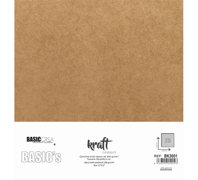 Papel Básico Kraft 300g 30,5x30,5cm 25 hojas - Precio Pack