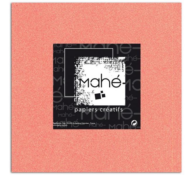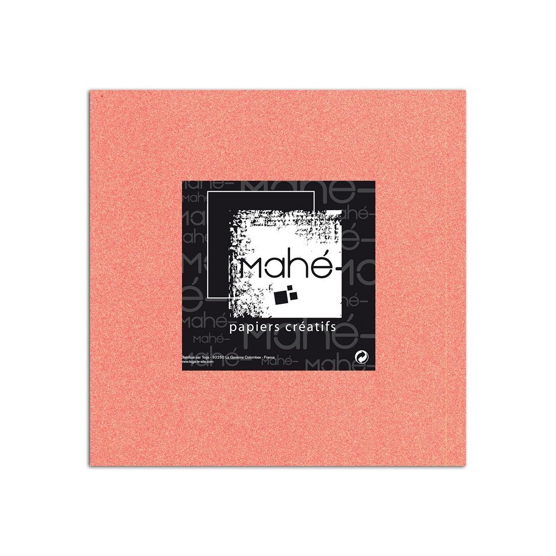 Mahé 30x30 - Glitter papel adhesivo Naranja Fluo 5 hojas. papel creativo, adhesivo y de cartulina completamente brillante. Formato útil : 30,5 x 30,5 cm. 200 g/m², Sin Acido.