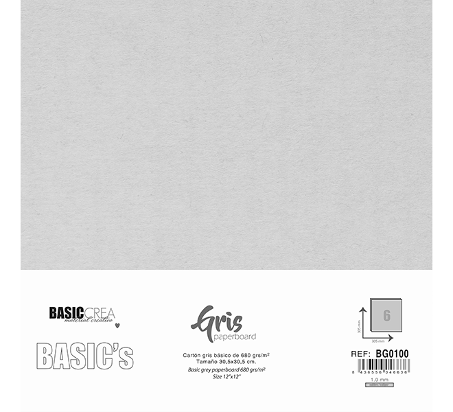Cartón Básico Gris 1,0" 30,5x30,5cm 6 hojas- Precio por hoja