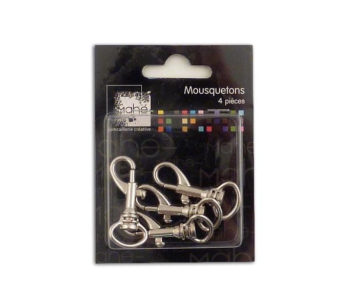 Surtido de 4 mosquetones en metal. Dimensiones : 3,7 cm.