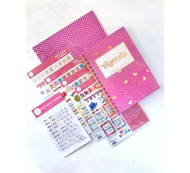 Kit Agenda PEGA,PAPEL O TIJERAS" Rosa"