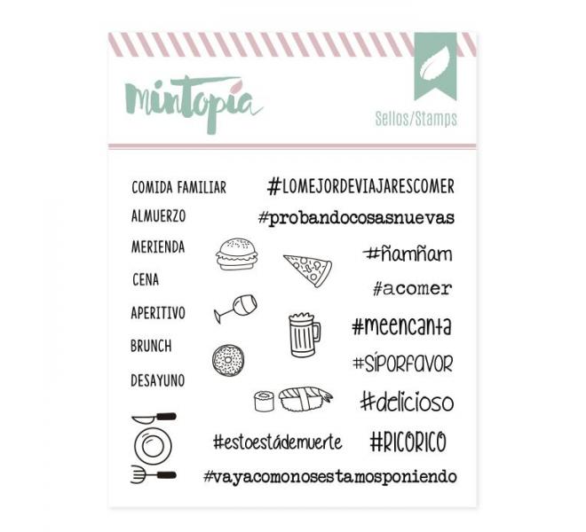 Sellos acrílicos Hashtags deliciosos 10 cm x 10 cm